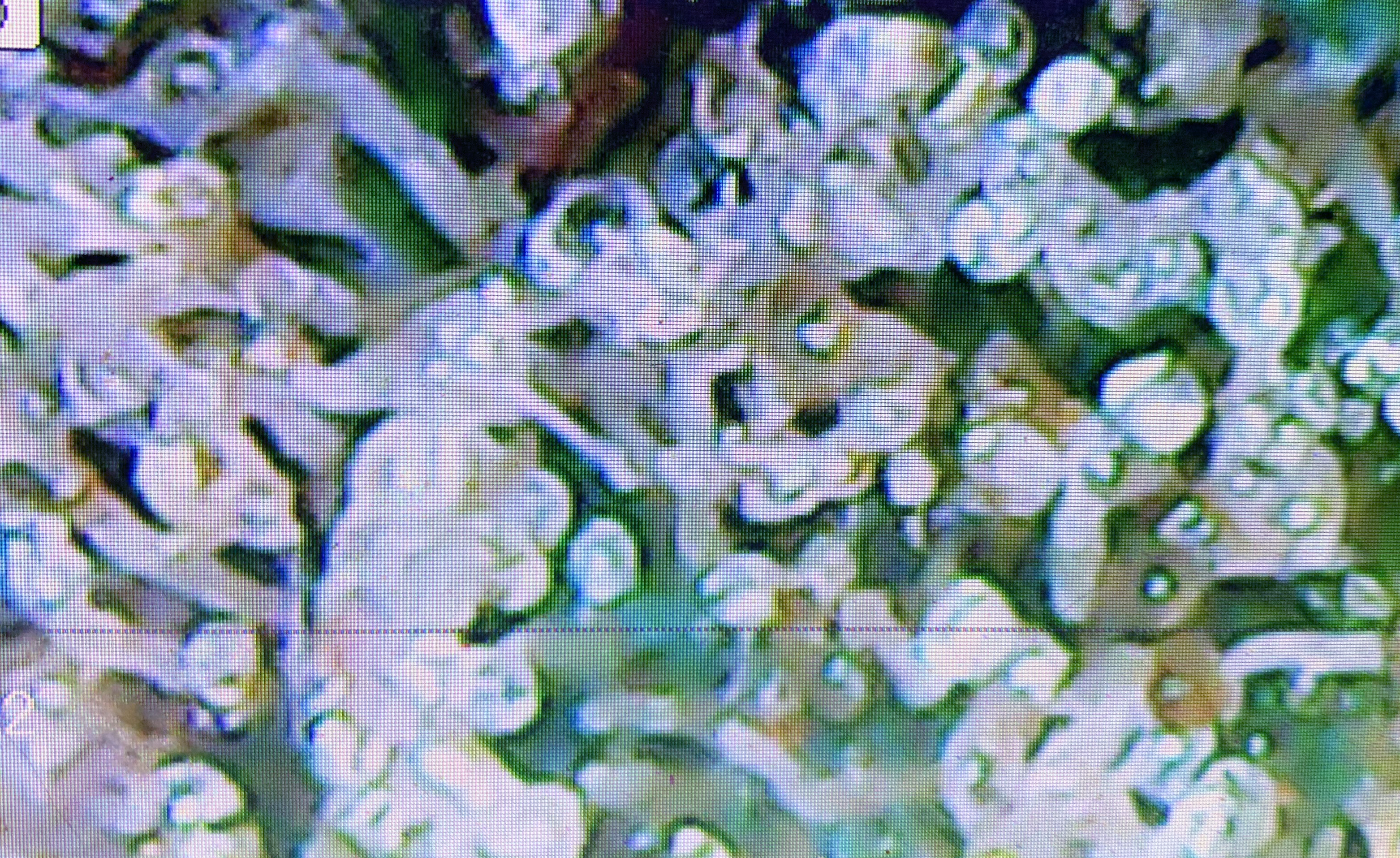 Cheapo microscope display photographed with an iPhone. The image stabilization captured the display's [large] pixels.